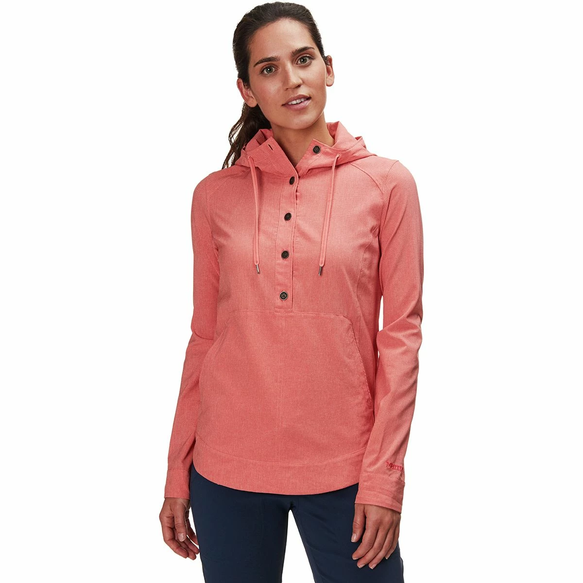 Whether you’re relaxing by a campfire or getting warmed up at the gym, the Marmot Lorey Hooded Top is the lightweight layer that bridges the needs of warmth and airflow. It features AirExchange Performance fabric, which has a breathable construction and polyester fibers that manage moisture. The pullover design features a snap placket that makes it easy to get the Lorey on and off, as well as allows you to add airflow as you start to heat up. A 3-piece hood provides a roomy refuge for your head and neck while a kangaroo pocket warms your chilled fingers when you step away from the fire.